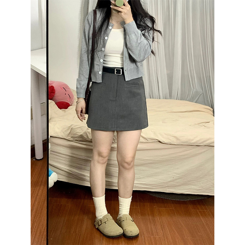| nameOriginal | Grey Suit Short Skirt Women's Summer plus size chubby girl High Waist Slimming Pear Shape A- Line Half Skirt |