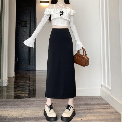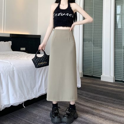 | nameOriginal | Grey Suit Skirt Women's Spring and Autumn New High Waist Slimming Straight Tube Mid-length Split A- shaped One-step Hip Skirt |