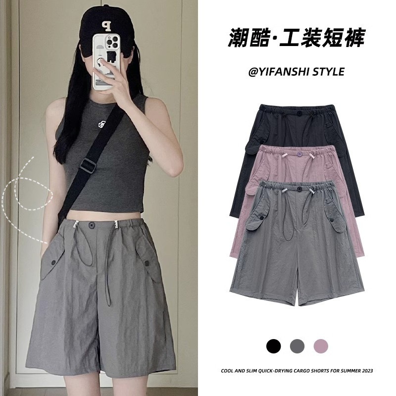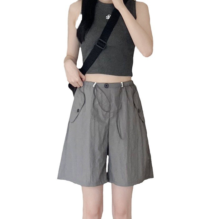 | nameOriginal | Grey Tooling Shorts Women's Summer Thin High Waist Casual Wide Leg Design Sense Quick-drying Sports American Pants |