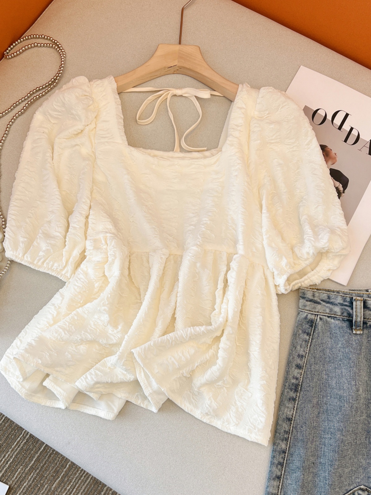 | nameOriginal | Guangzhou Jacquard Square Neck Chic and Unique Puff Sleeve Top |