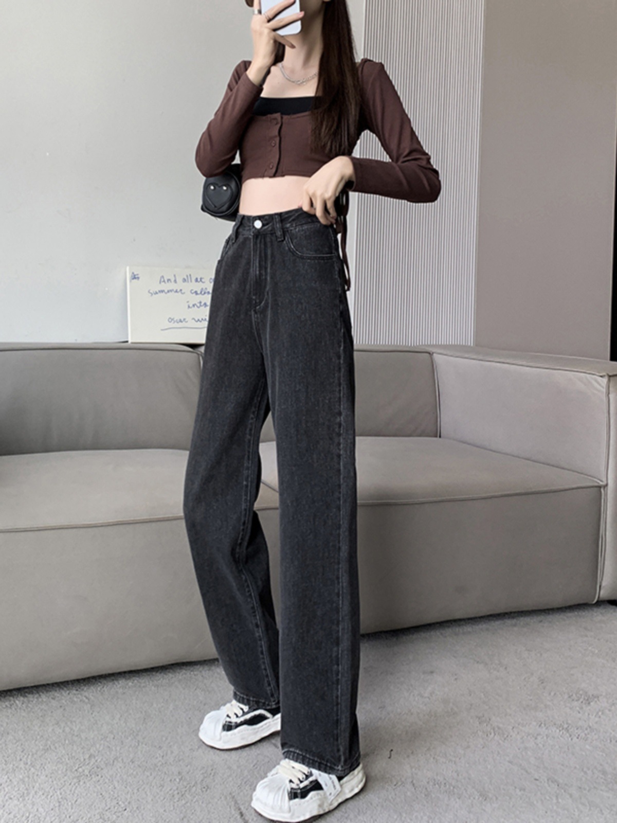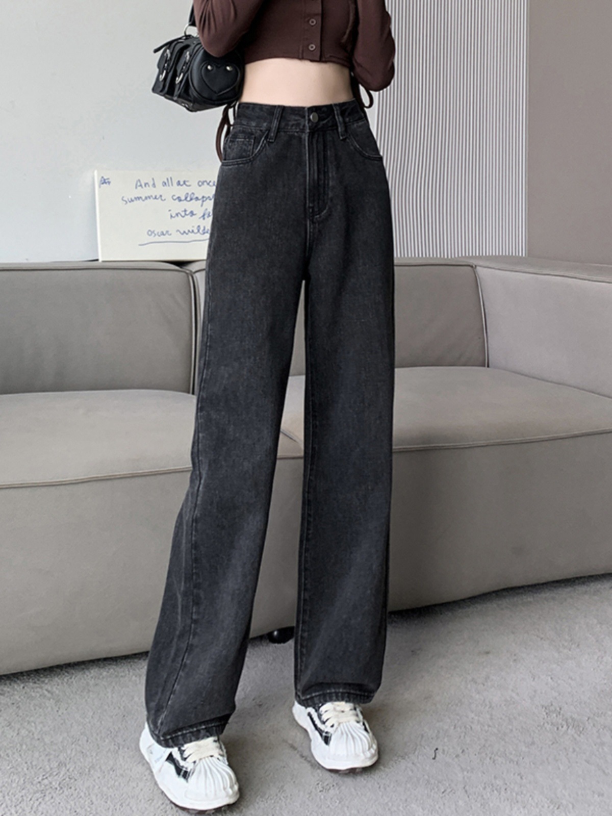 Guangzhou Xintang straight jeans new women's autumn and winter small high waist narrow wide leg pants mop pants