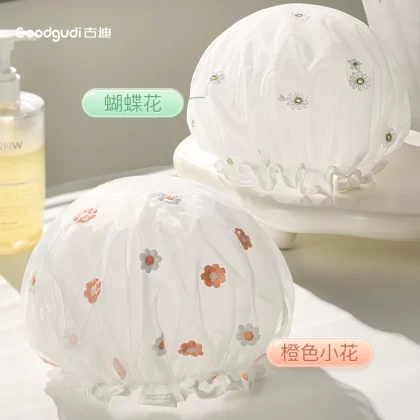 Gudi embroidery double layer thick dry hair shower cap for women