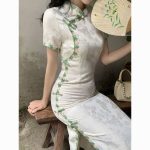 Guofeng تحسين شيونغسام المرأة الصيف قصيرة الأكمام القديمة فستان طويل يوميا فتاة شابة نمط