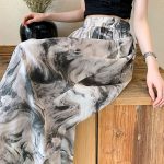 Guofeng طلاء حبر الطباعة الحرير الجليد بنطال ذو قصة أرجل واسعة المرأة الربيع والصيف 2024 رقيقة عالية الخصر داغر التخسيس السراويل المستقيمة