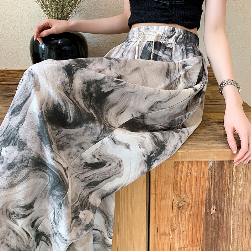 Guofeng Ink Painting Printing Ice Silk Wide Leg Pants Women's Spring and Summer 2024 Thin High Waist Dagging Slimming Straight Pants