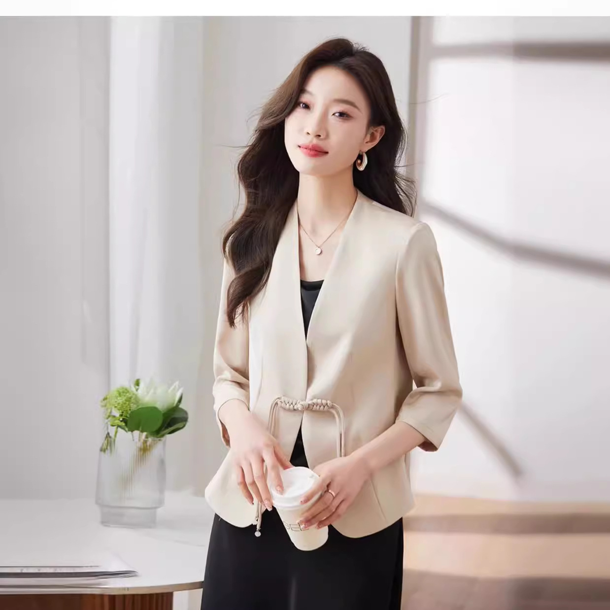 Guofeng Small Suit Jacket Women's Seven-point Sleeve Buckle Spring Summer and Autumn Women's Thin Small Suit New Chinese Style Top