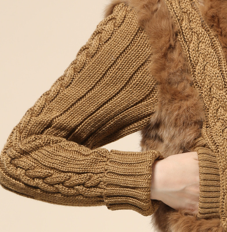 سترة هاينينغ الفراء 2022 الجديدة للسيدات من فرو الأرانب سترة قصيرة من الصوف المحبوك مع قبعة للربيع والخريف