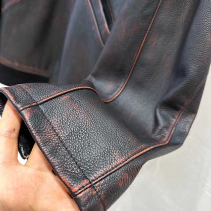 nameOriginal | Haining Genuine Leather Color Antique Retro Collar Black Fashion Brand Long Sleeve European and American Loose Solid Color Long Jacket |