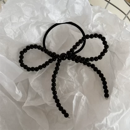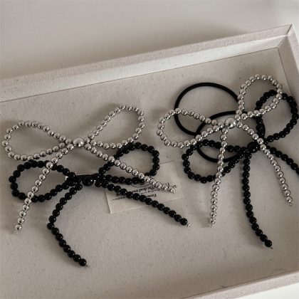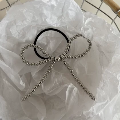 Hair clip silver figure eight beaded bow