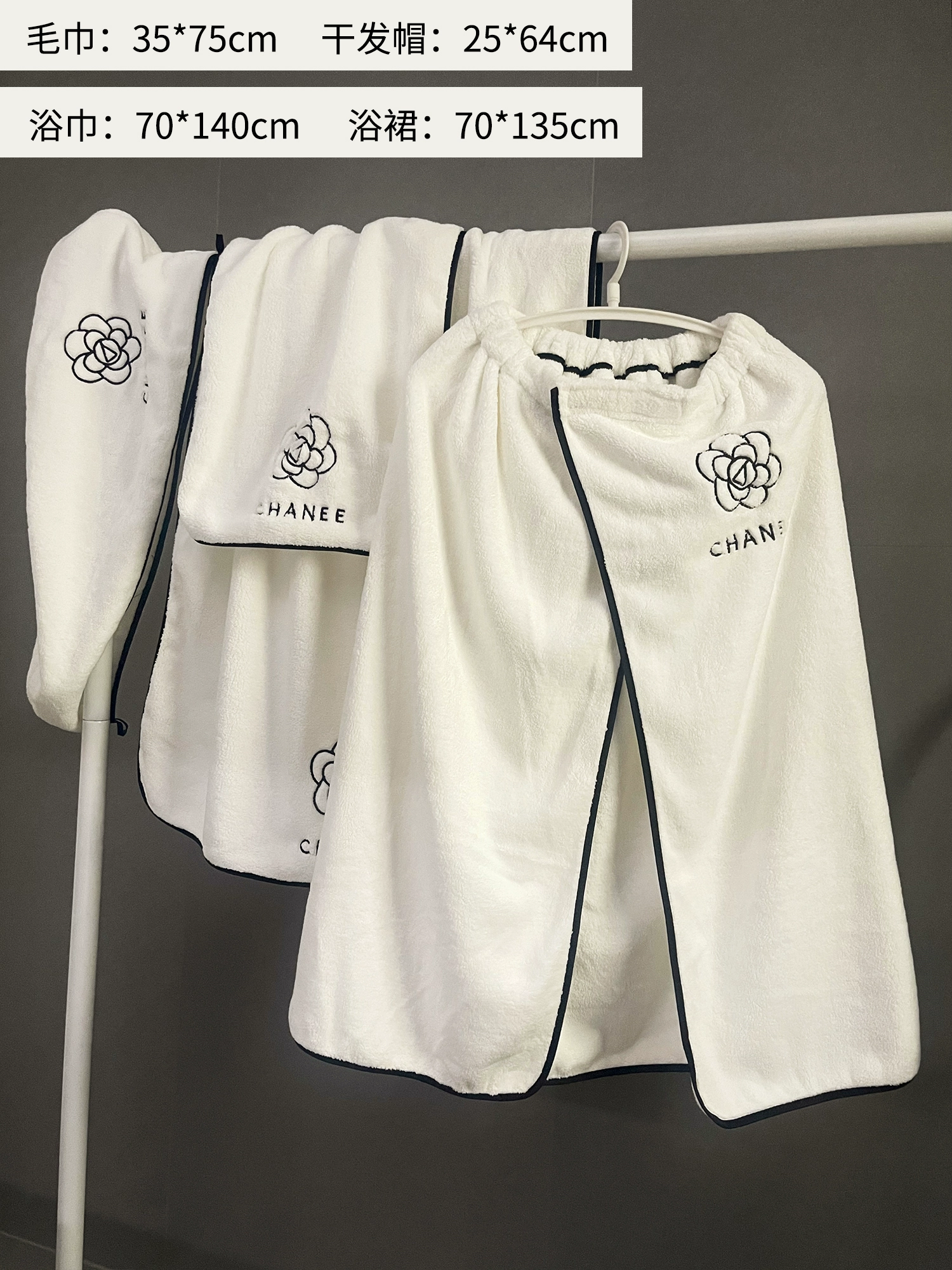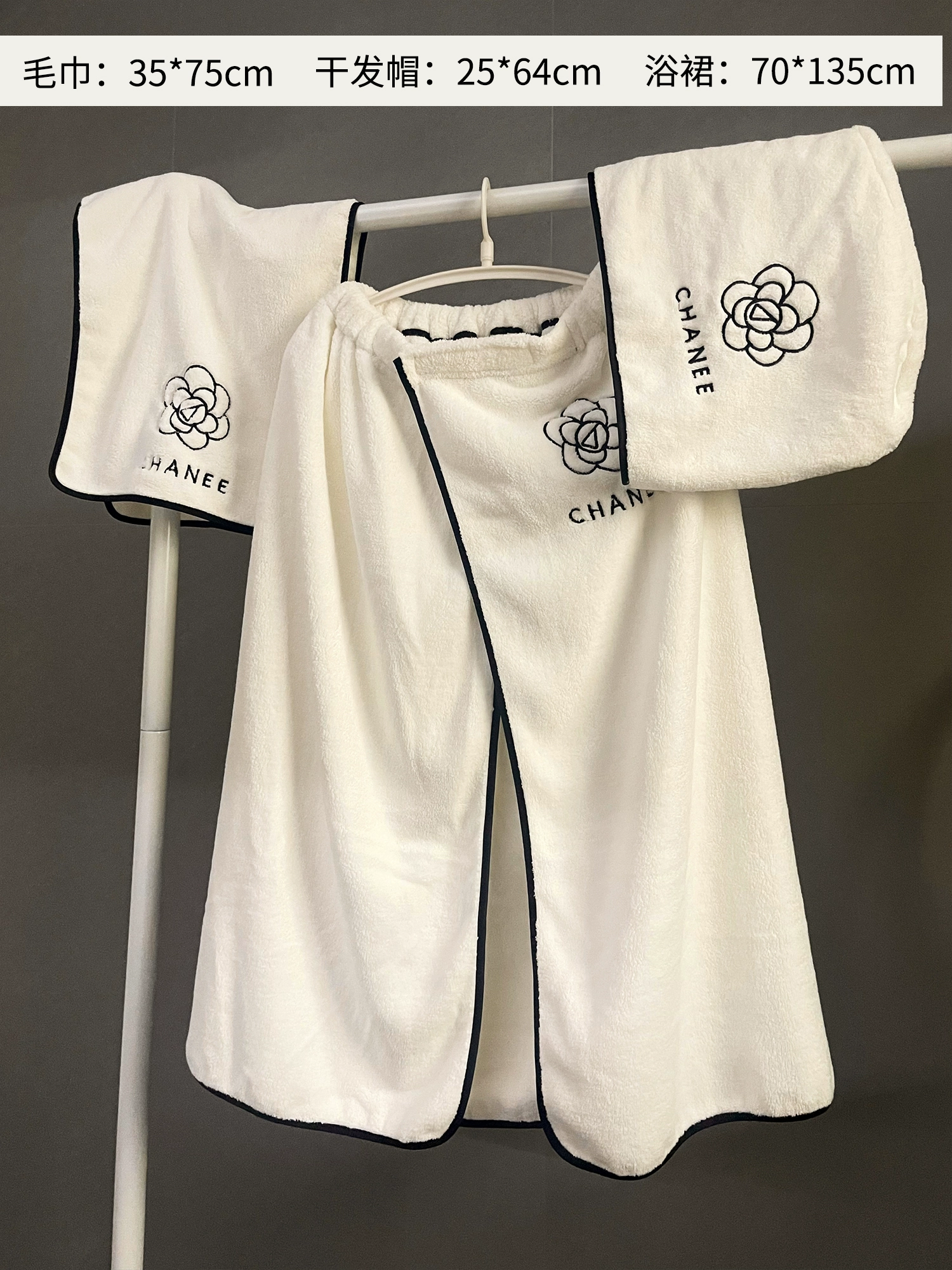 Hair drying cap, wearable three-piece couple's large bath towel set