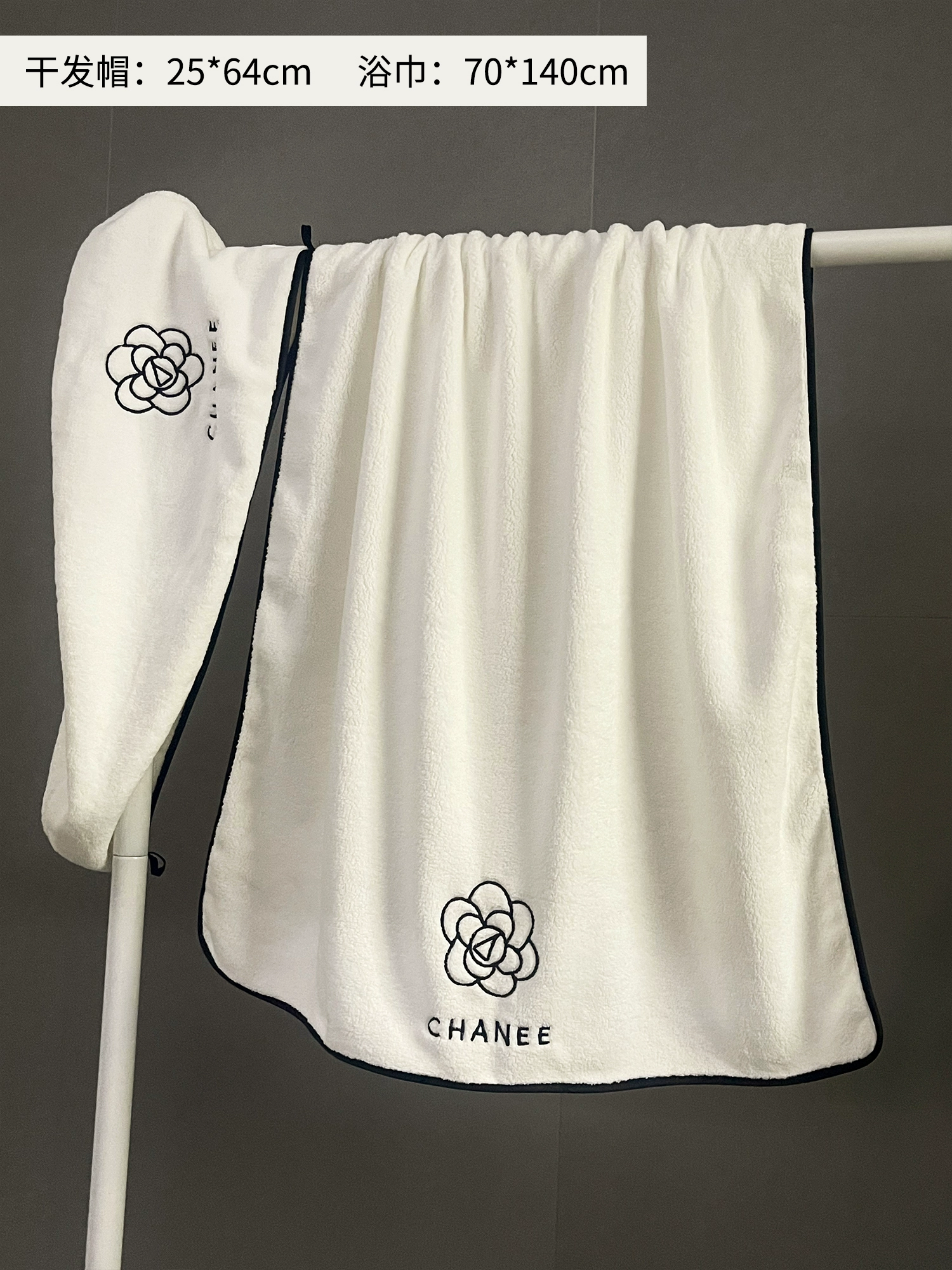 يمكن ارتداء قبعة الشعر الجاف مع مجموعة من ثلاث قطع من مناشف حمام كبيرة