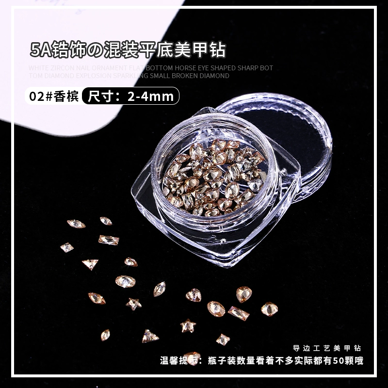 | nameOriginal | Hair-free flat bottom diamond manicure mini zircon diamond flash new inverted edge transparent white champagne special-shaped small diamond mix |
