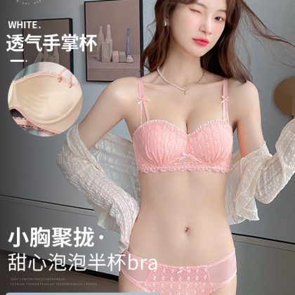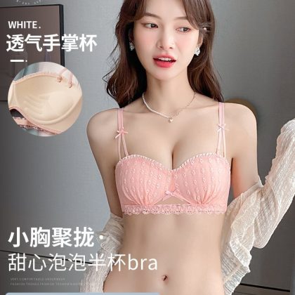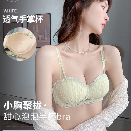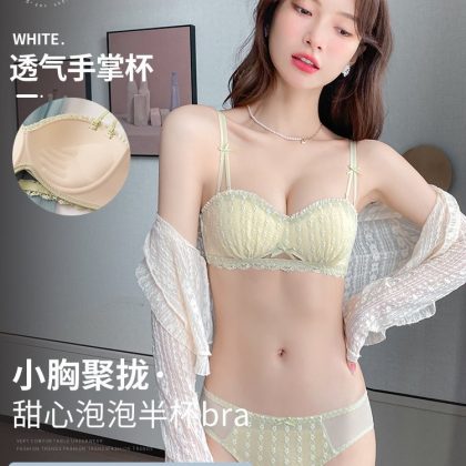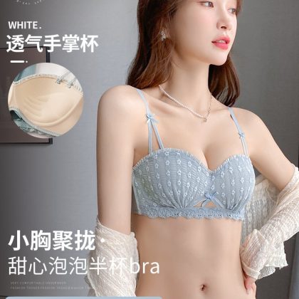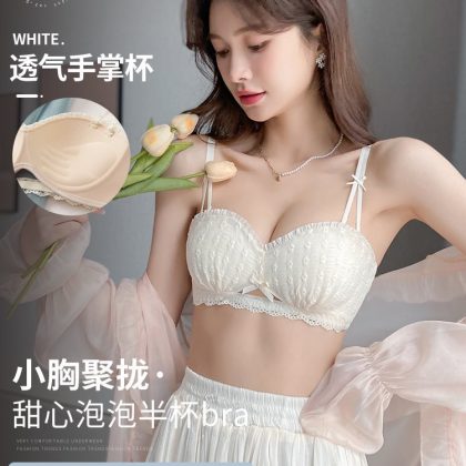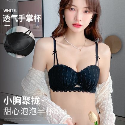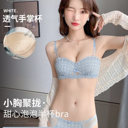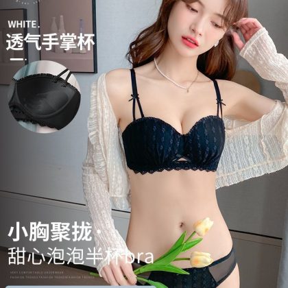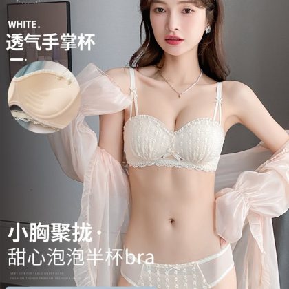 | nameOriginal | Half cup underwear girl's small chest gathered big and sentimental cat flat chest strapless no steel ring bra set summer |