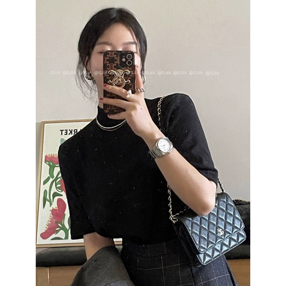 | nameOriginal | Half turtleneck, right shoulder, summer casual top, short-sleeved T-shirt |