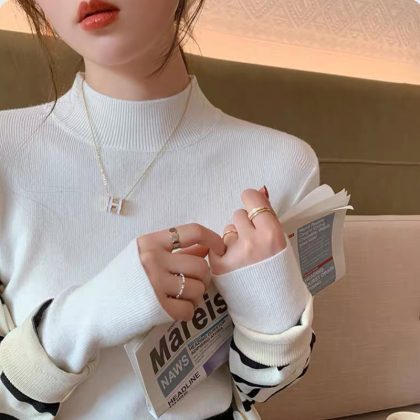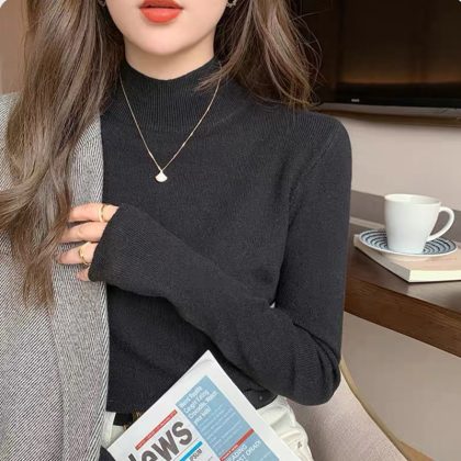 | nameOriginal | Half turtleneck sweater bottoming shirt Women's Western style inner wear autumn and winter 2024 new white sweater slim mid collar top |