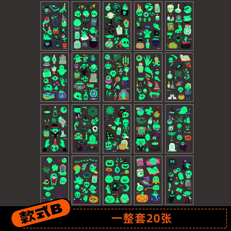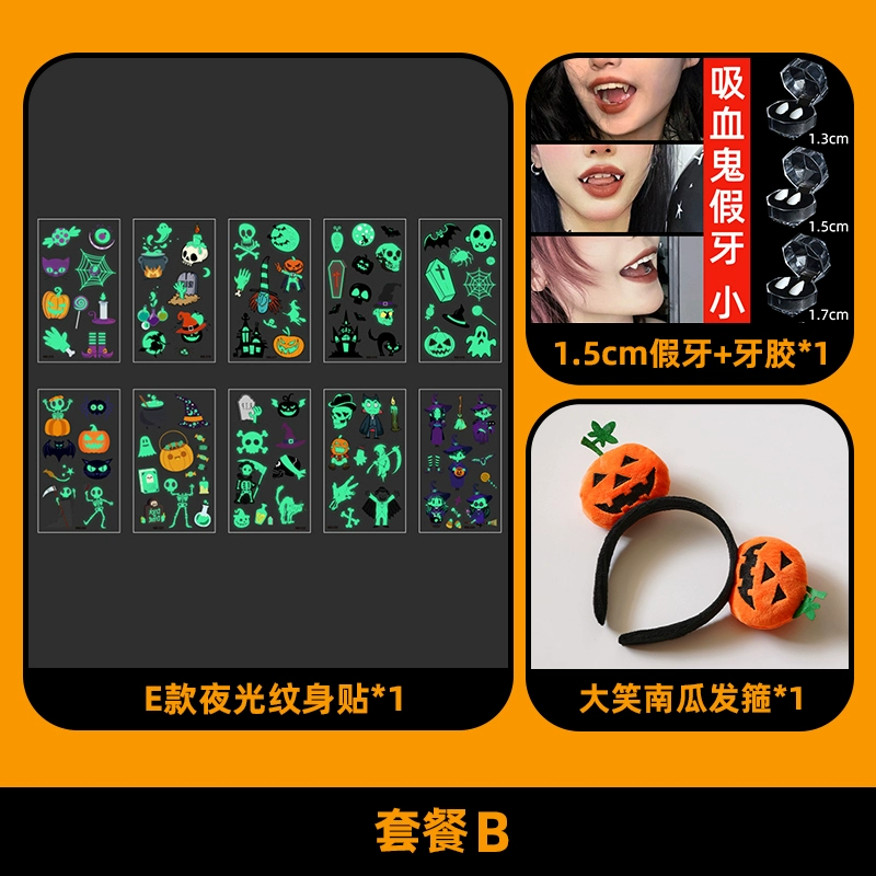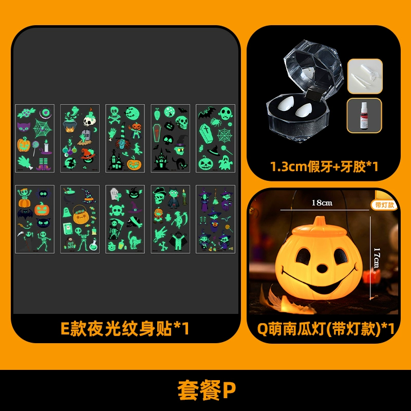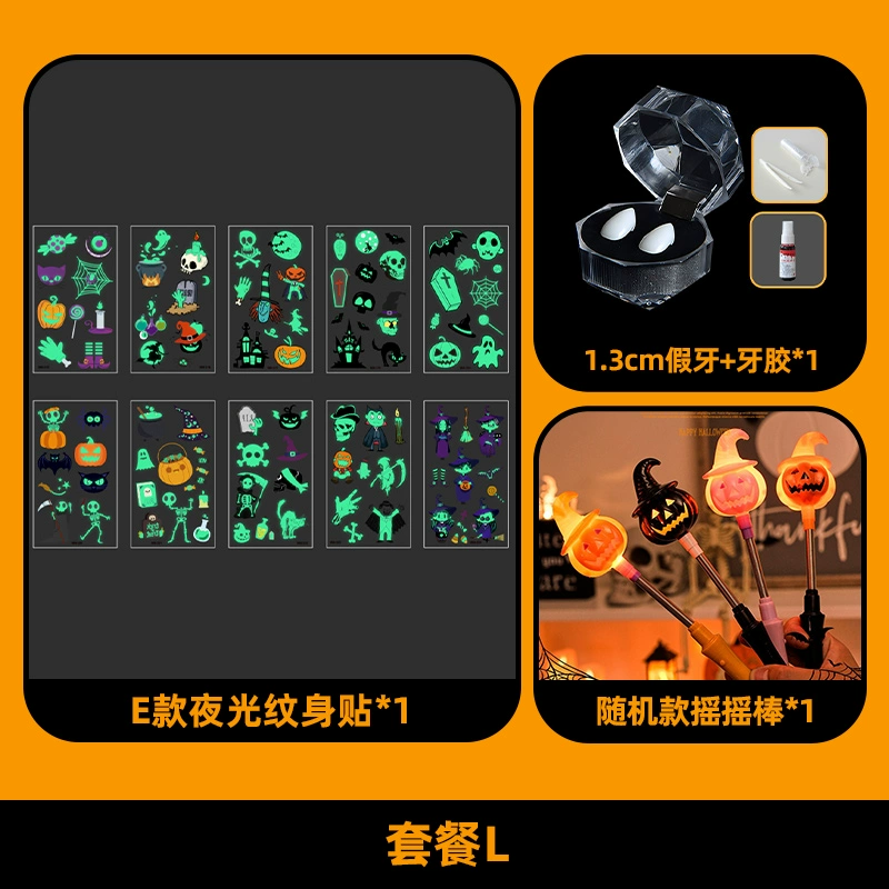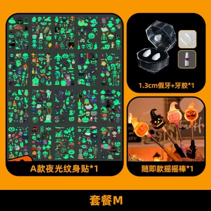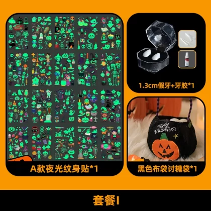 | nameOriginal | Halloween themed decorations, children's accessories, kindergarten luminous tattoo stickers, scene layout, dress-up, photo props |