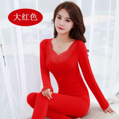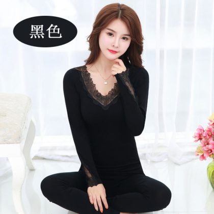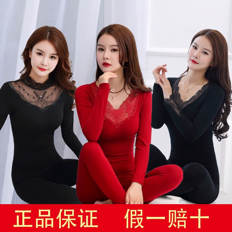 nameOriginal | Han Jie American Autumn Clothes and Pants suit Women's Lace Sexy Slim-fit Shaping Cold-proof Body Thin Thermal Underwear Two-piece Set |