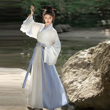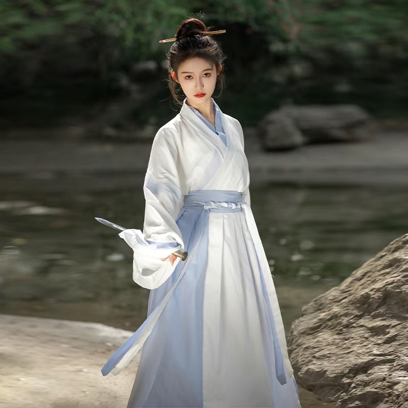Han Yu Kui Han Yu Kui Original Hanfu Female [Mo] Jin-made Double-layer Crossover Collar Top Waist-length Skirt Three-piece Set for Lovers