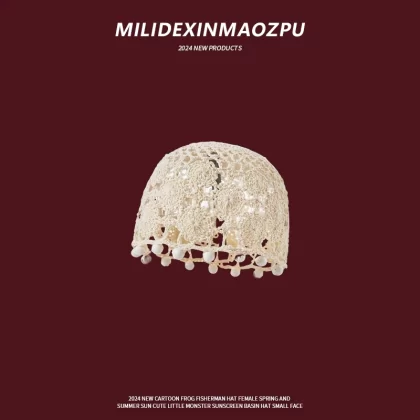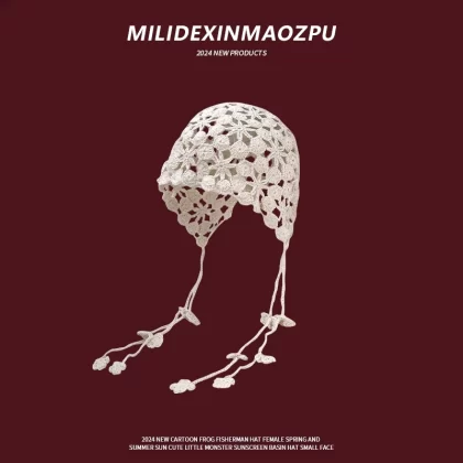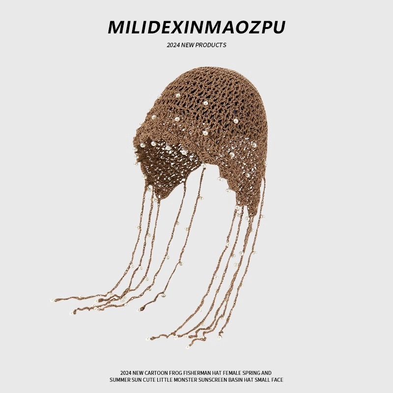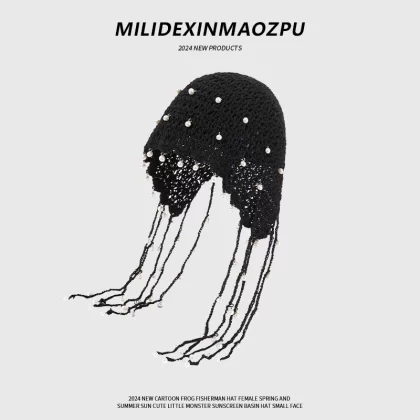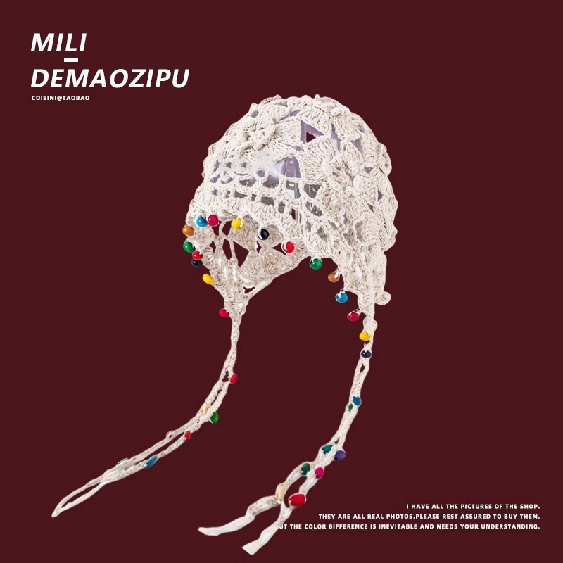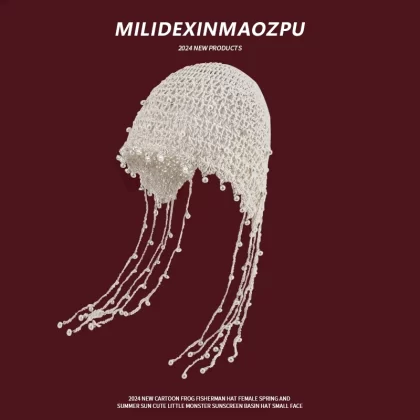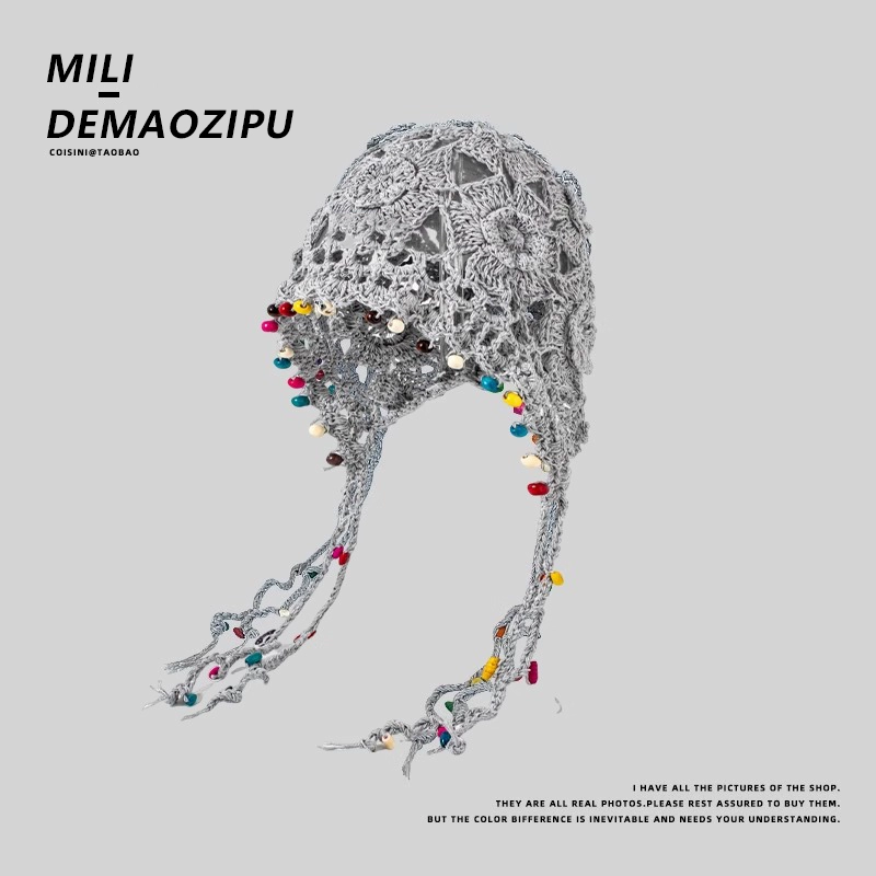 | nameOriginal | Hand knitted women's pearl tassel ethnic style hat |