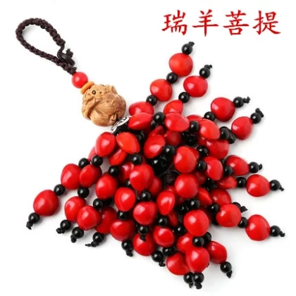 | nameOriginal | Hand-woven red heart and bodhi red keychain pendant twelve zodiac signs red bean backpack waist buckle couple accessories |