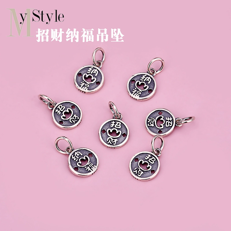 Handmade diy jewelry material accessories 925 sterling silver lucky ingot copper coin pendant Thai silver couple best friend