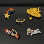 | nameOriginal | Handmade Indian silk embroidery clouds cartoon universe stars moon rocket brooch accessories pin decorative corsage |