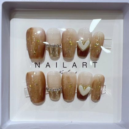 Handmade Manicure Dressed False Nail Patch Manicure Finished Autumn and Winter White Sainting Love Removable