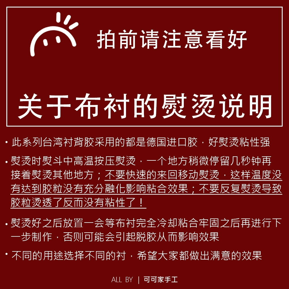 | nameOriginal | Handmade Taiwanese soft lining single-sided glued pure cotton fabric accessories |