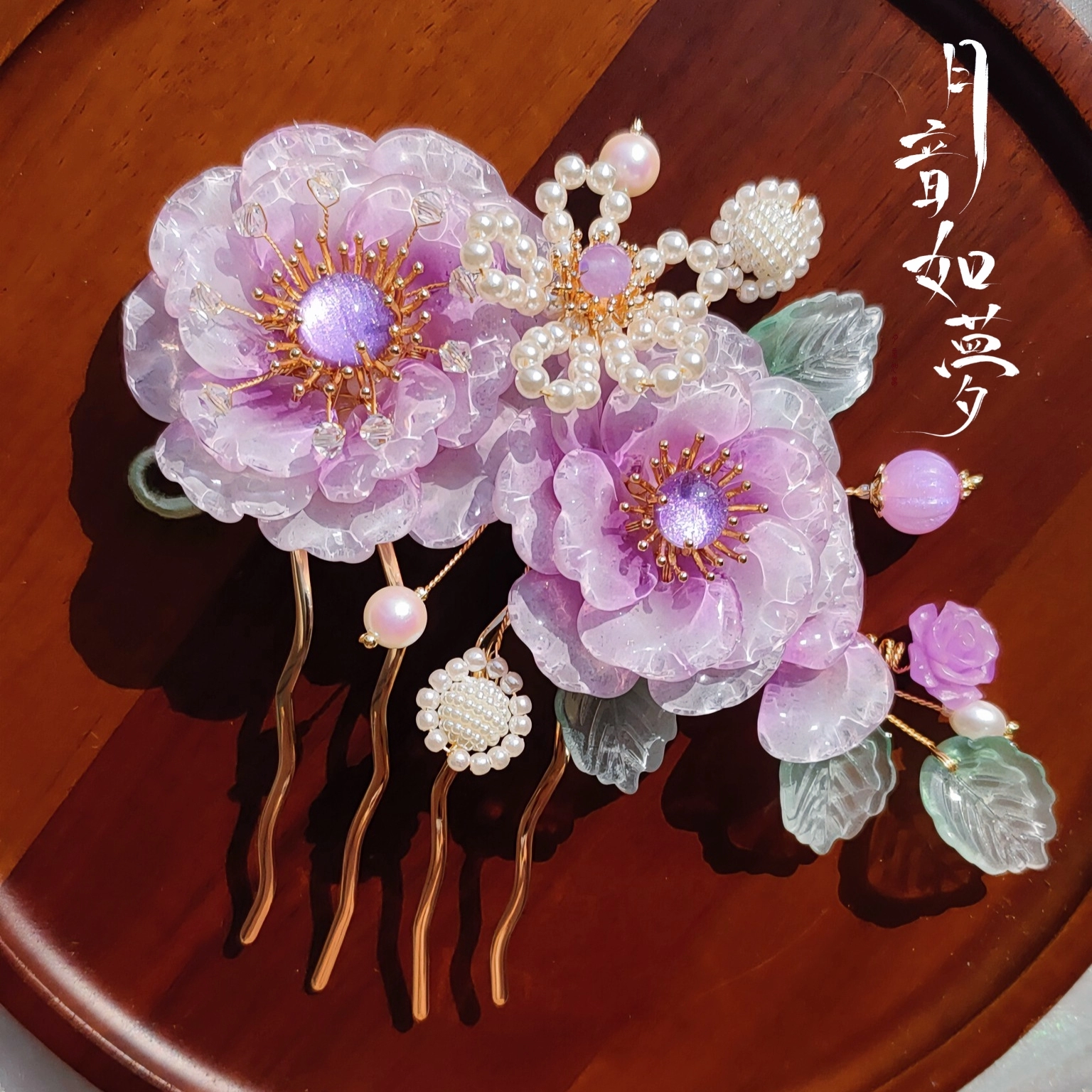 | nameOriginal | Hanfu hair accessories red red flower glazed hairpin wedding original hairpin hair comb ethnic style national style color-preserving wedding headwear |