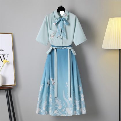 | nameOriginal | Hanfu Women's Chinese style short shirt suit cropped horse face improved spring and summer Han element fairy ancient costume |