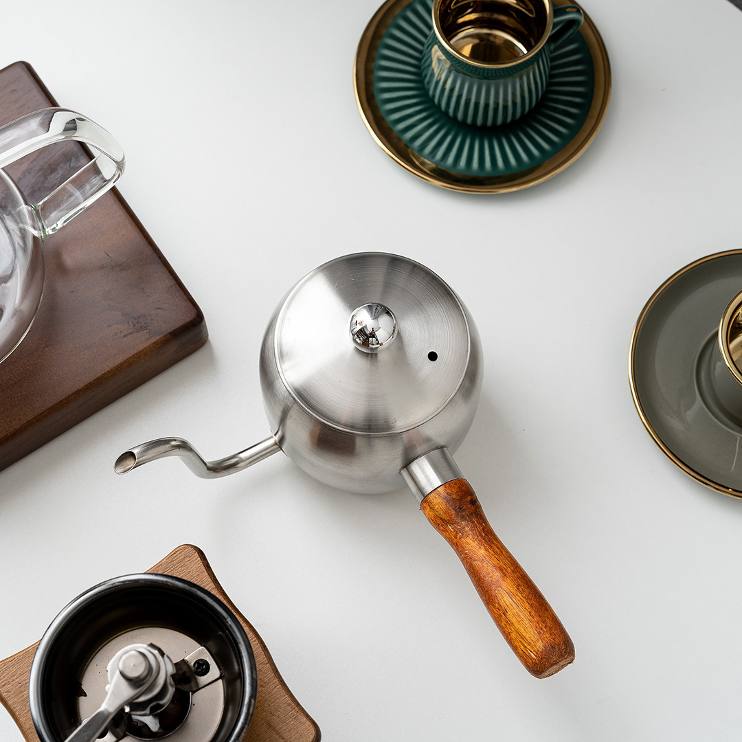 Hanging ear coffee hand pot fine mouth pot wooden handle stainless steel v60 filter Cup smart cup sharing pot coffee pot suit