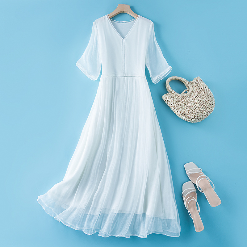 | nameOriginal | Hangzhou silk dress women's summer new seven-point sleeve slim A- word fairy skirt wholesale |