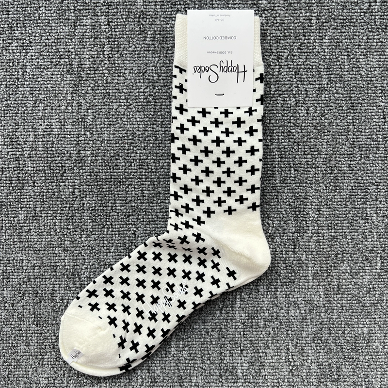 happysocks socks for women, Swedish ins trendy socks, internet celebrity models, pure cotton socks for all seasons, versatile mid-tube socks for outer wear