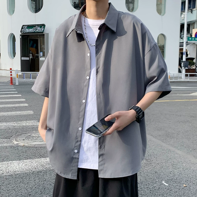 Harajuku style niche simple drapey casual short-sleeved shirt