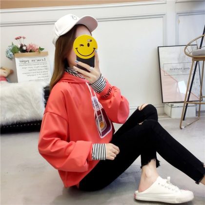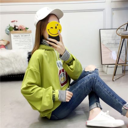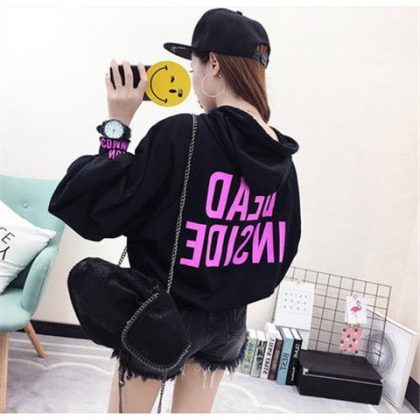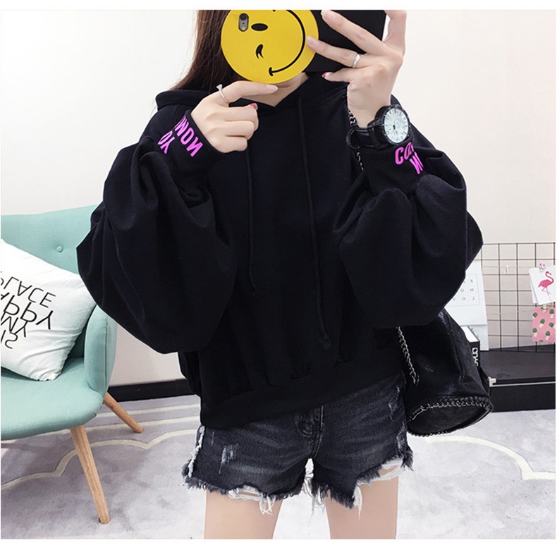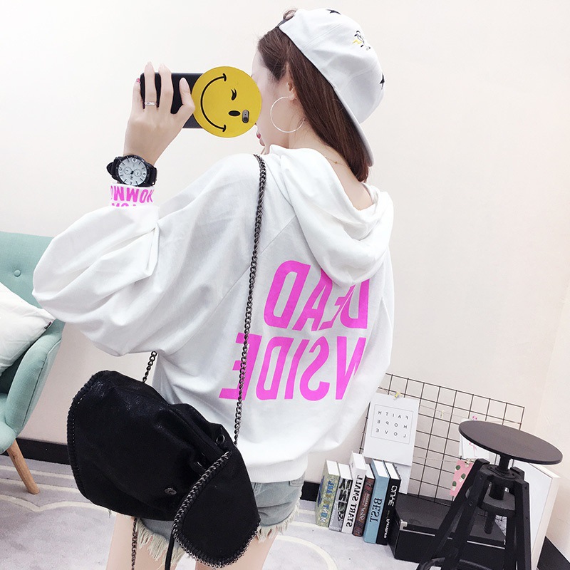 Harajuku Style Sweatshirt Women's 2022 Spring and Autumn New Korean Loose Hooded Student Printed Clothes Short Coat chubby girl