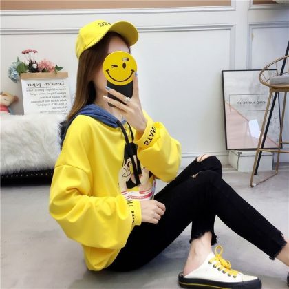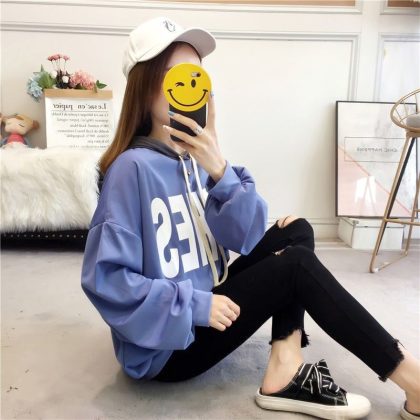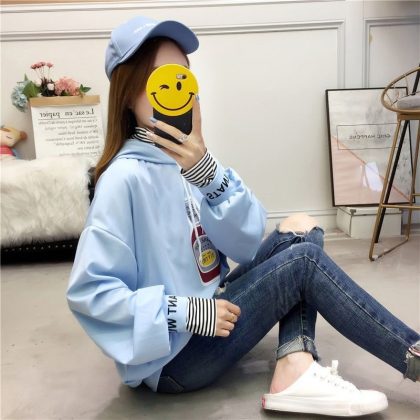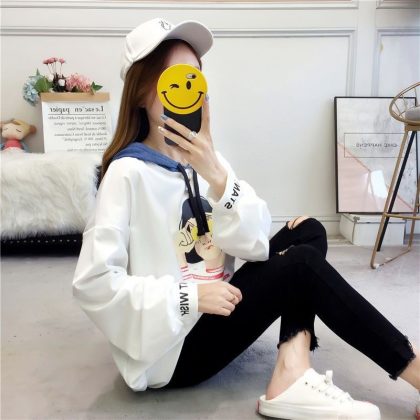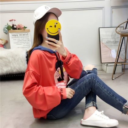 Harajuku نمط البلوز المرأة 2022 الربيع والخريف جديد الكورية فضفاض مقنعين طالب ملابس مطبوعة معطف قصير فتاة السمين