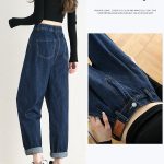 بنطال جينز نسائي قصير هارلان موضة صيف 2022 نمط جديد رفيع بخصر عالٍ فضفاض مستقيم على شكل جزرة للأب سروال صغير الحجم