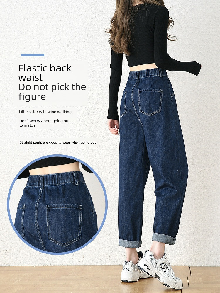 Harlan Cropped Jeans Women's 2022 Summer New Style Thin High Waist Loose Straight Carrot Daddy Pants for Petite