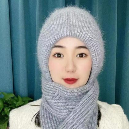 Hat and scarf winter women's new squirrel velvet plus velvet padded warm snow cap ear protection one-piece knitted hat