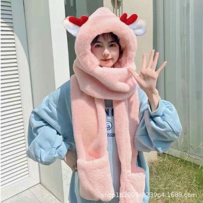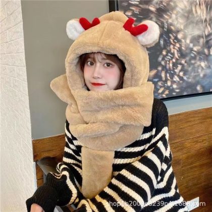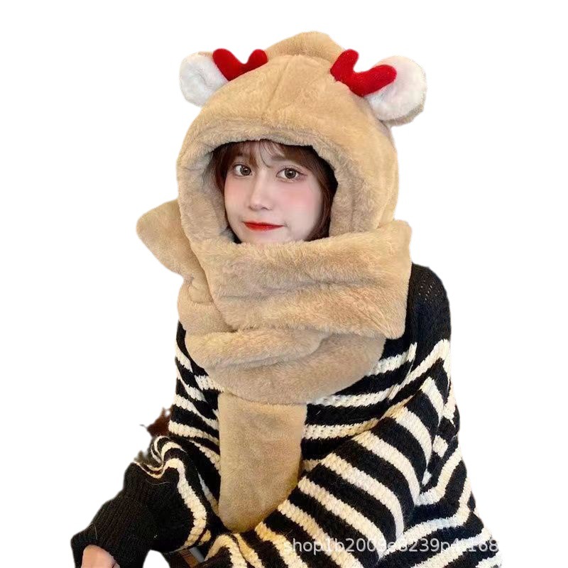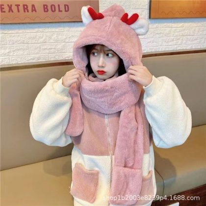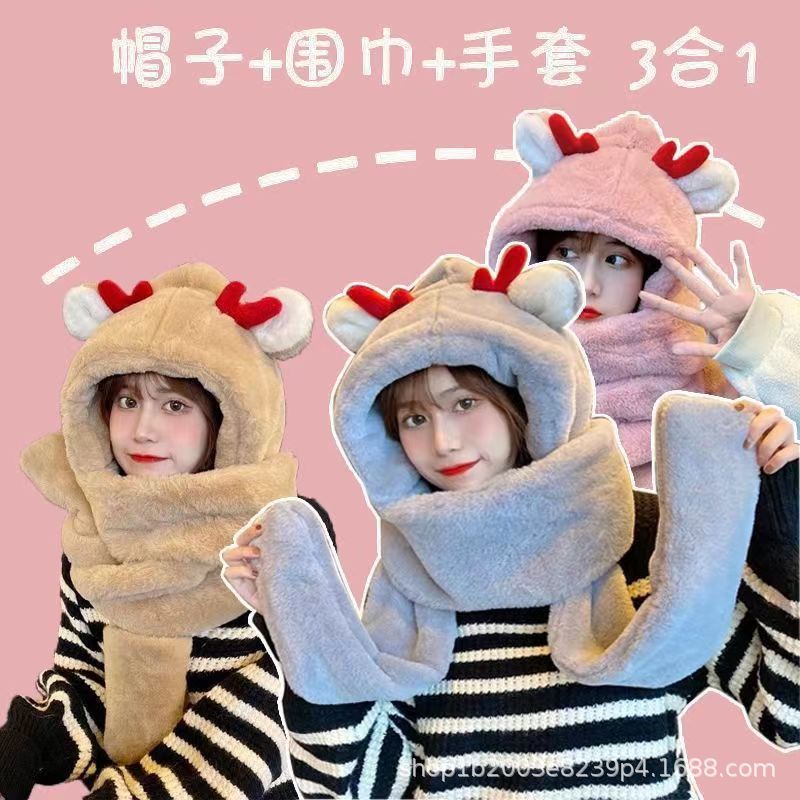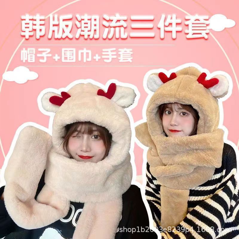 | nameOriginal | Hat scarf gloves integrated hat autumn and winter Korean style versatile warm toe cap winter cute plush double layer hat for women |