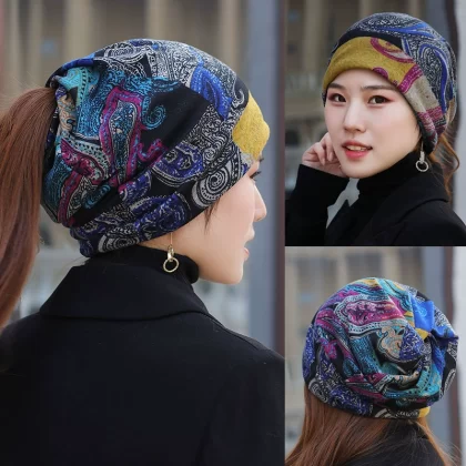| nameOriginal | Hat Women's Korean Style Autumn and Winter Multifunctional Headband Hat High Elasticity Large Size Flower Baotou Hat Warm Ponytail Scarf Hat |