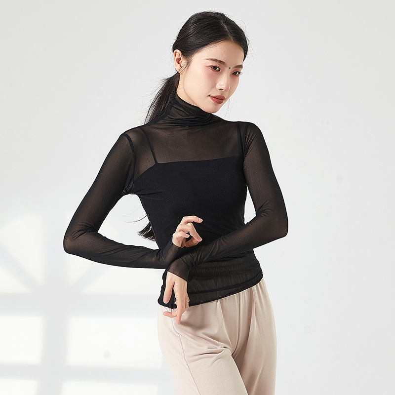 | nameOriginal | Heap High Collar Mesh Dancing Clothes Women's Solid Color Perspective Light Gauze Clothes Classical Dance Dancing Clothes |