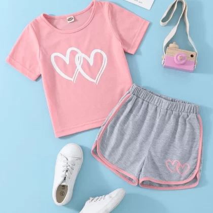 | nameOriginal | Toddler Girls Heart Print Tee & Contrast Binding Track Shorts |