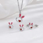 | nameOriginal | Heart Rabbit stud earrings for women 2024 New rabbit year suit ring clavicle chain pink love Bunny necklace |