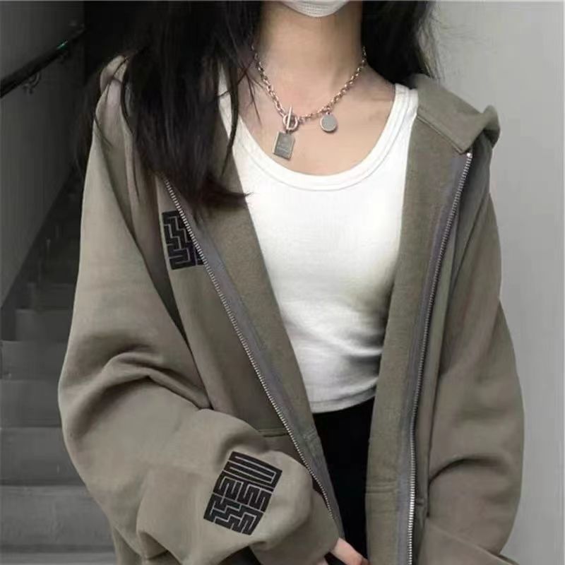 | nameOriginal | Heavy European and American High Street Hooded Sweater Women's Spring and Autumn Loose Trendy ins Lazy Hong Kong Style chic Thin Zipper Jacket |
