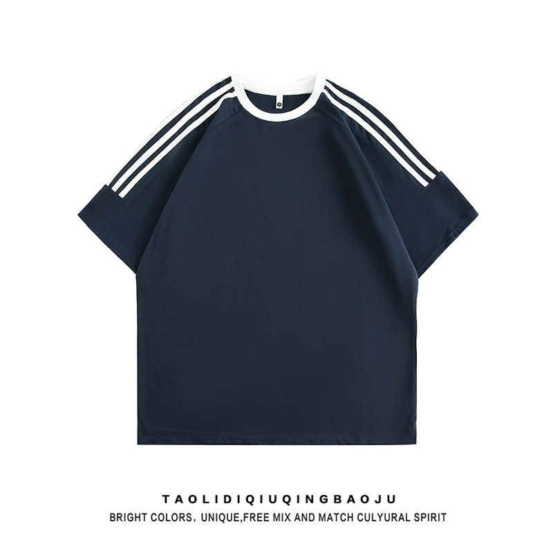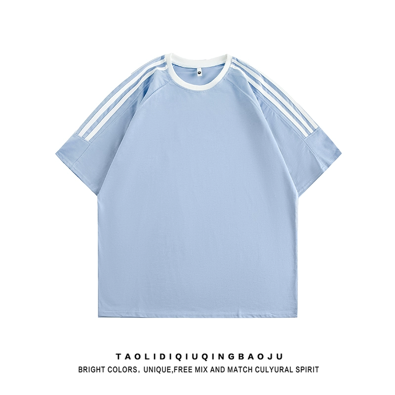 Heavy Harajuku style couple’s slim baby blue T-shirt