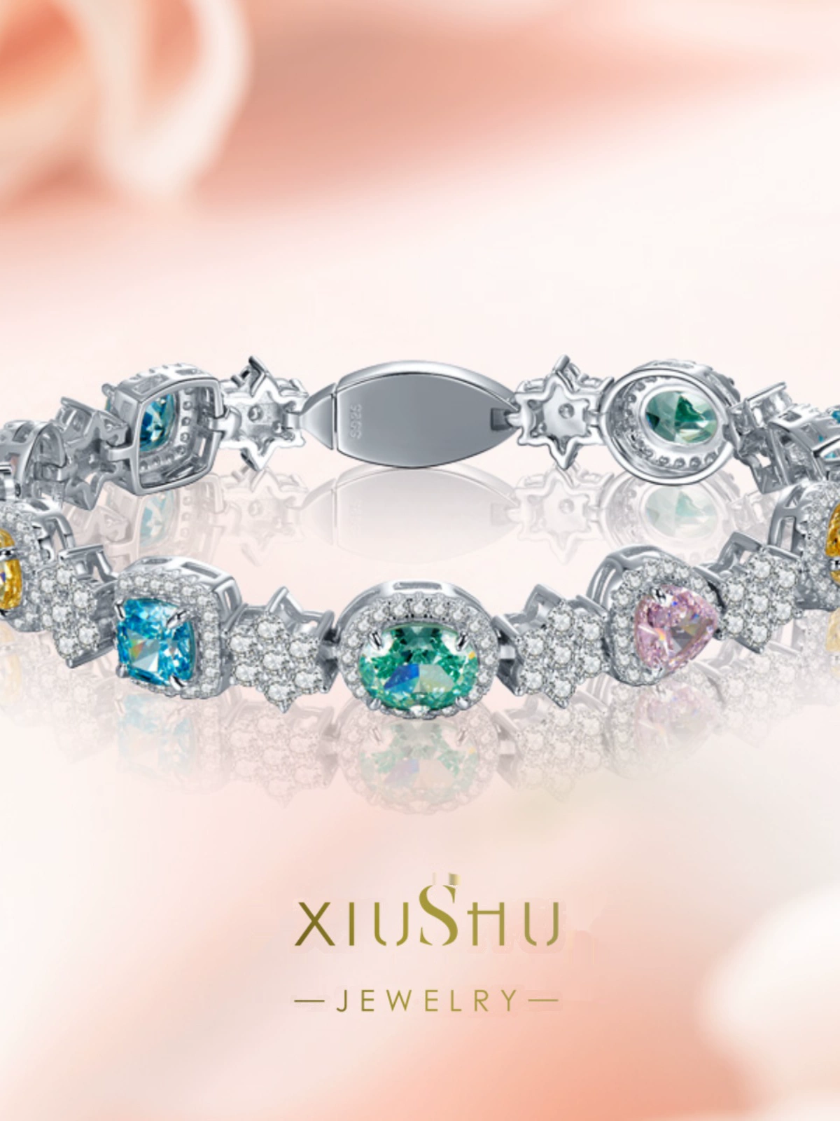 Heavy industry high carbon diamond colored diamond bracelet simple 925 sterling silver sweet fashion niche princess non-fading hand inlaid