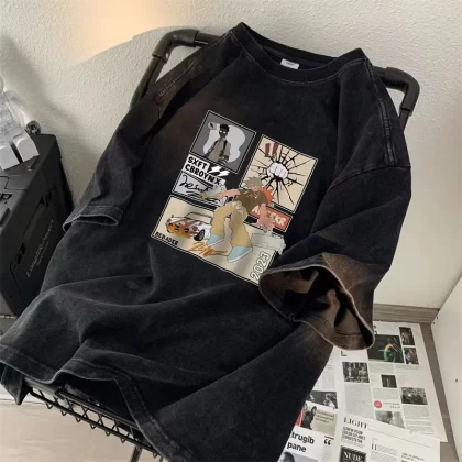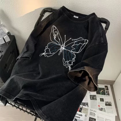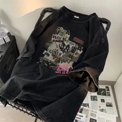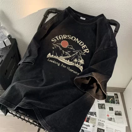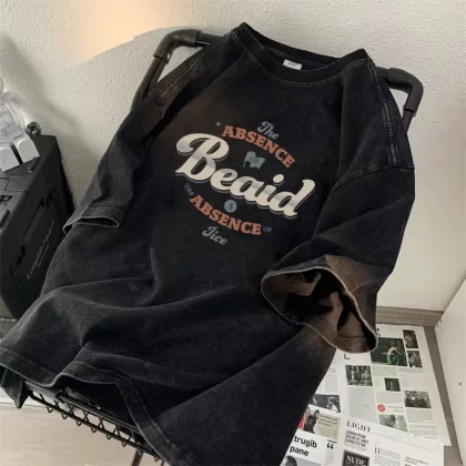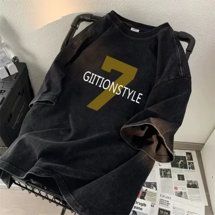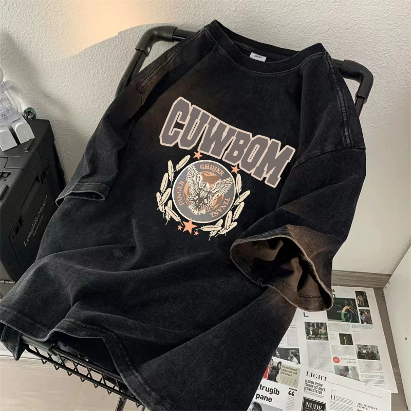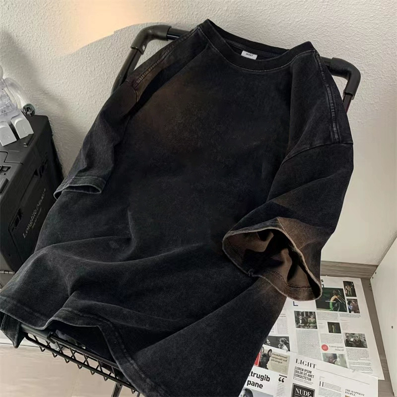 | nameOriginal | Heavyweight short-sleeved T-shirt for boys 2024 new ins trendy brand high street handsome loose and versatile washed and distressed top clothes |