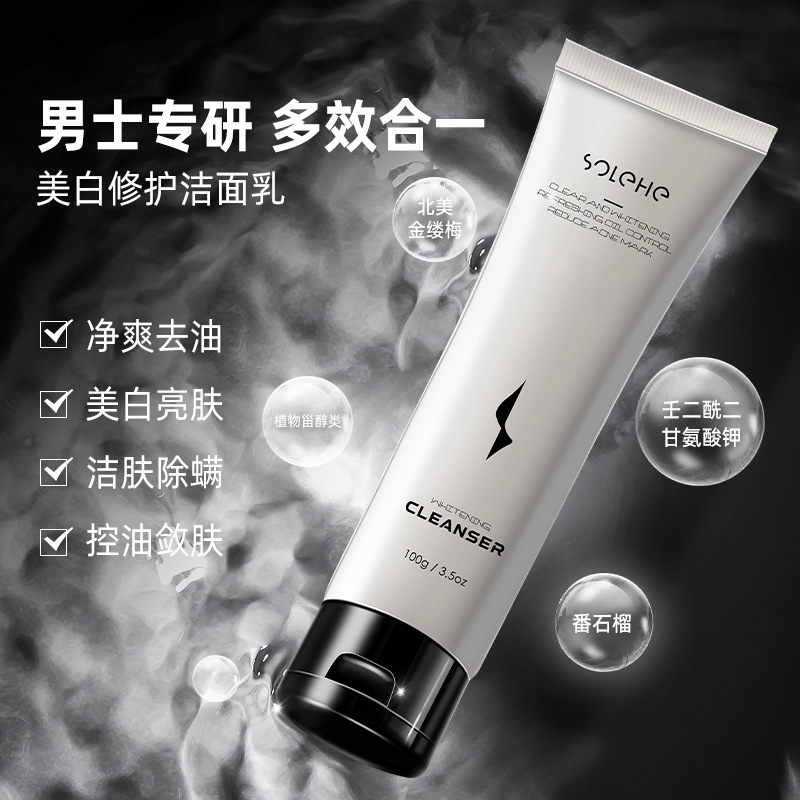 | nameOriginal | Hefeng men's Whitening Facial Cleanser 100g oil control acne removing whitening blackhead removing refreshing whitening facial cleanser |