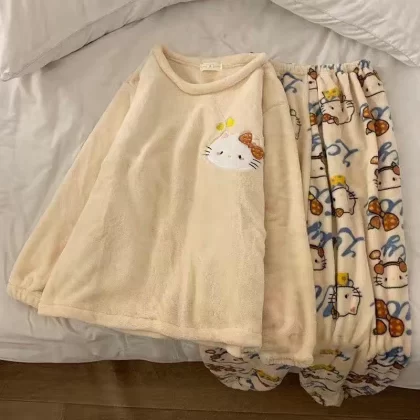 | nameOriginal | hellokitty flannel pajamas girls autumn and winter new style plus velvet warm casual home student dormitory pajamas |